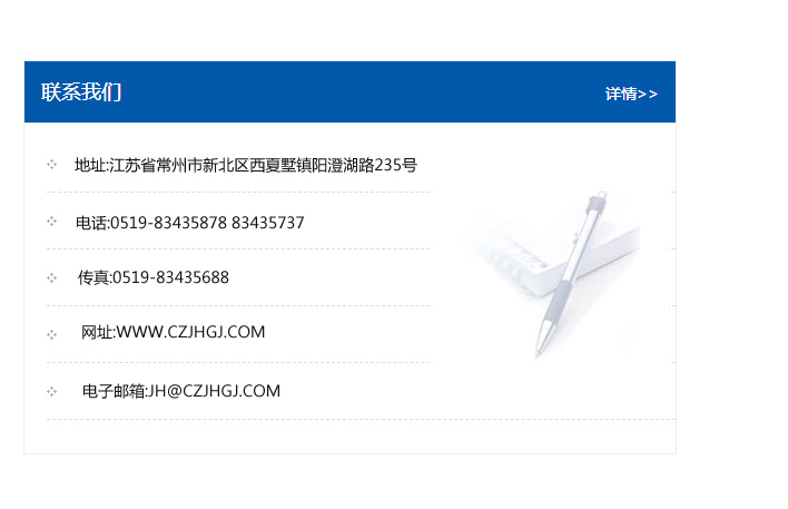 地址:常州市新北區友邦商務大廈1幢16、17層  電話:0519-85101652  傳真:0519-85112595  郵編:213022  網址:www.cz-jiayue_cn.blongnet.com  郵箱:xiajifengaa@163.com
